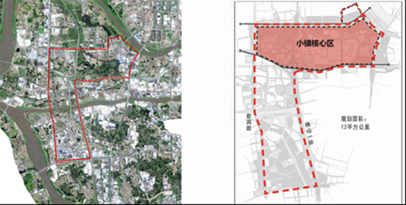 图2 南庄镇卫星图及小镇范围图(图片来源:南庄镇政府)
