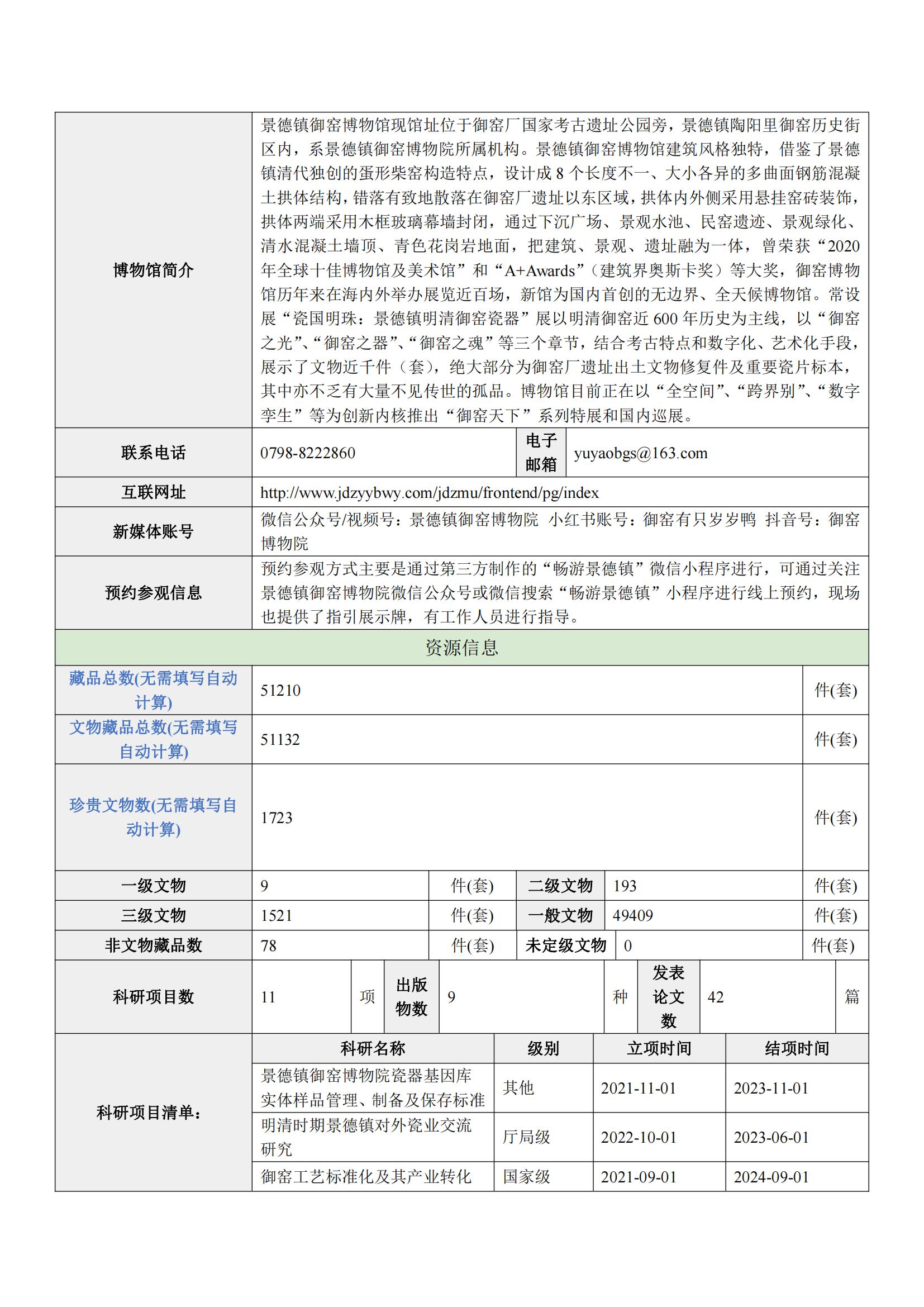 博物馆备案名称 :景德镇御窑博物院