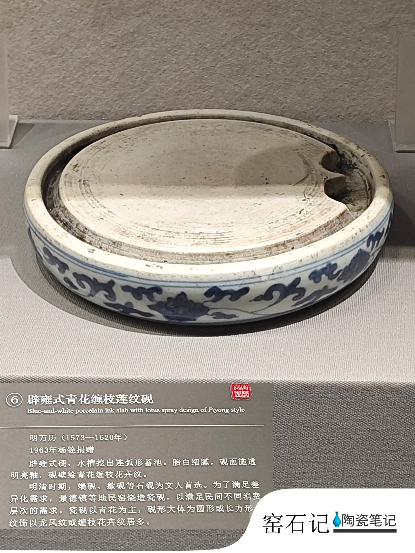 辟雍式青花缠枝莲纹砚Blue-and-white porcelain ink slab with lotus spray design of Piyong style
