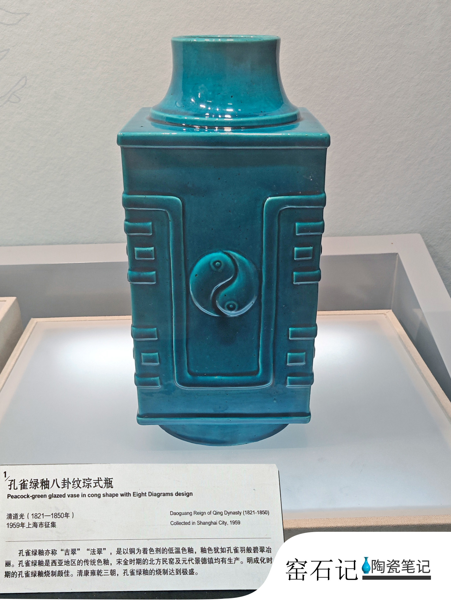孔雀绿釉八卦纹琮式瓶Peacock-green glazed vase in cong shape with Eight Diagrams design
