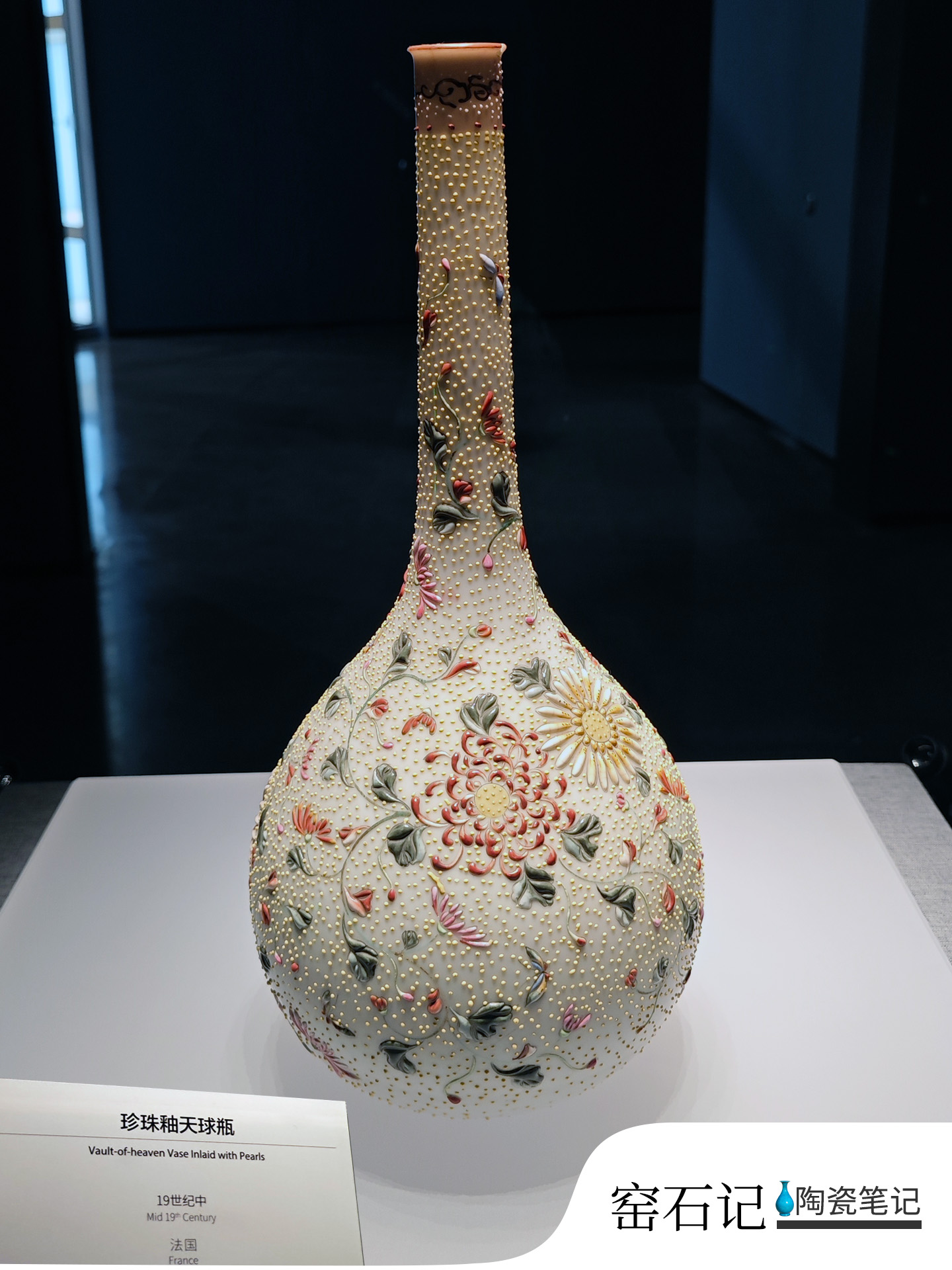 十九世纪中法国陶瓷|珍珠釉天球瓶 (图摄于 广州美术馆 2025年10月)珍珠釉天球瓶Vault-of-heaven Vase Inlaid with Pearis19世纪中Mid 19* Century法国France 赞 笔记 分享 欢迎访问:陶瓷笔记