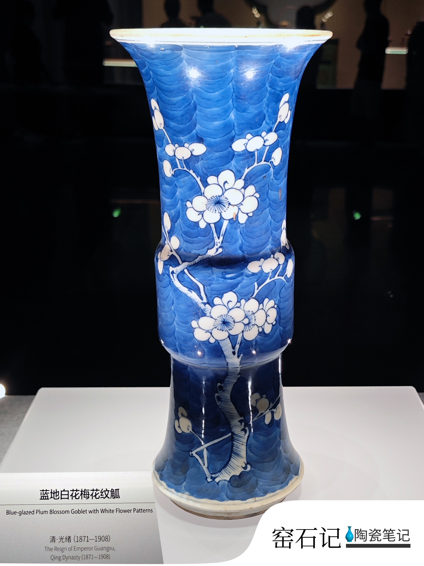博物馆陶瓷|清光绪蓝地白花梅花纹觚 (图摄于 广州美术馆 2025年10月)蓝地白花梅花纹觚Blue-glazed Plum Blossom Goblet with White Flower Patterns清·光绪(1871-1908)The Reign of Emperor Guangxu,Qing Dynasty(1871-1908) 赞 笔记 分享 欢迎访问:陶瓷笔记