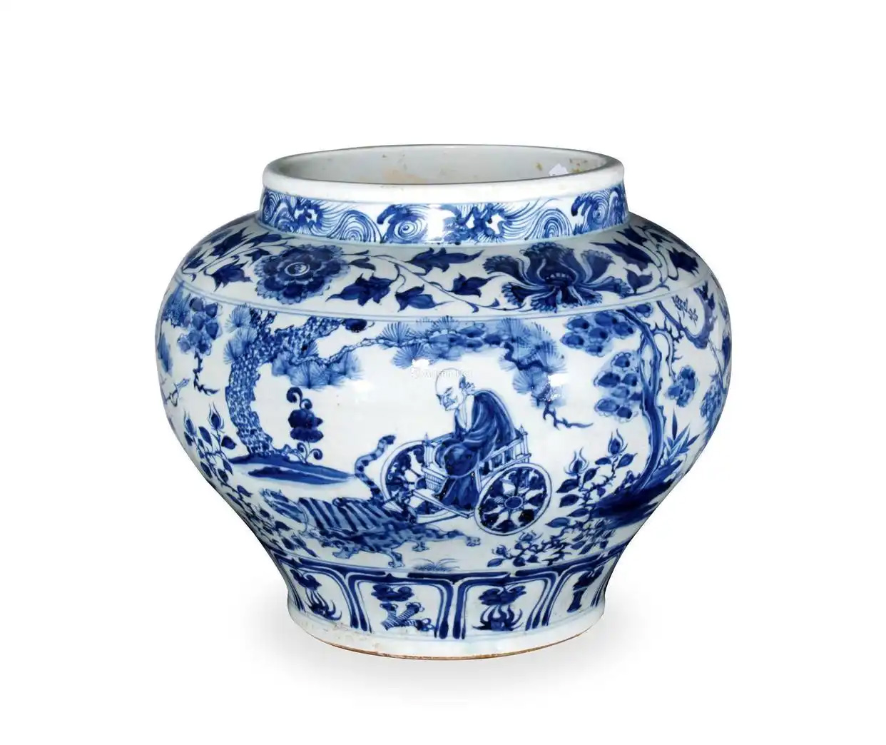 古代瓷器欣赏 - 元青花鬼谷子下山图罐 元青花鬼谷子下山图罐,现珍藏于故宫博物院。本瓷罐的青花料采用 “苏麻离青”,发色浓艳如深海宝石,笔触间自然晕散的铁锈斑,像星空坠落的痕迹。 赞 笔记 分享 欢迎访问:陶瓷笔记