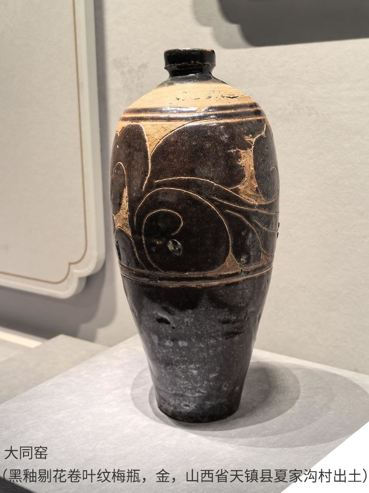 大同窑 大同窑。窑址位于山西省大同市青磁窑村。盛烧于金代,以剔花工艺最具特色。产品以黑瓷为主,兼烧褐釉瓷、茶叶末釉瓷。器型有梅瓶、罐、坛等。胎体厚重,胎色灰白,釉面乌黑发亮。剔花装饰均在肩部至腹部,多为缠枝卷叶纹,纹饰大多简练、流畅、奔放,艺术成就很高。 赞 笔记 分享 欢迎访问:陶瓷笔记