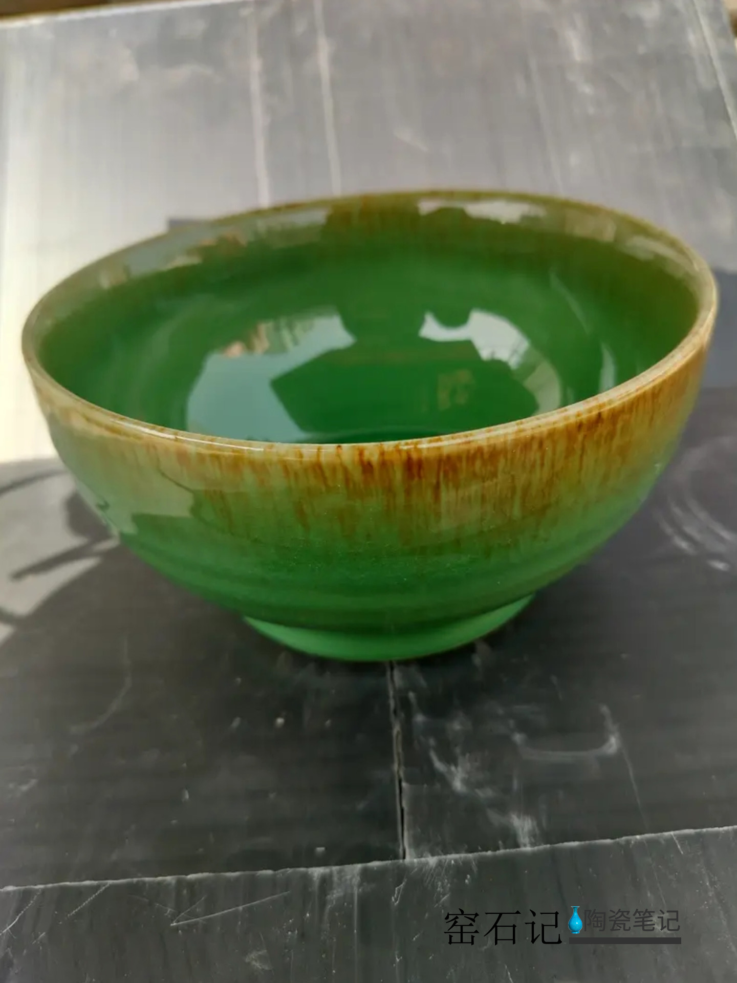 磁州窑瓷器,帝王绿釉碗,邯郸陶瓷五厂,国营厂时期。口径17cm。