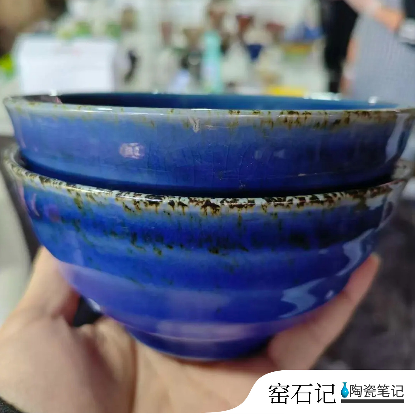 磁州窑粗瓷蓝釉螺纹碗,前国营邯郸陶瓷五厂生产。