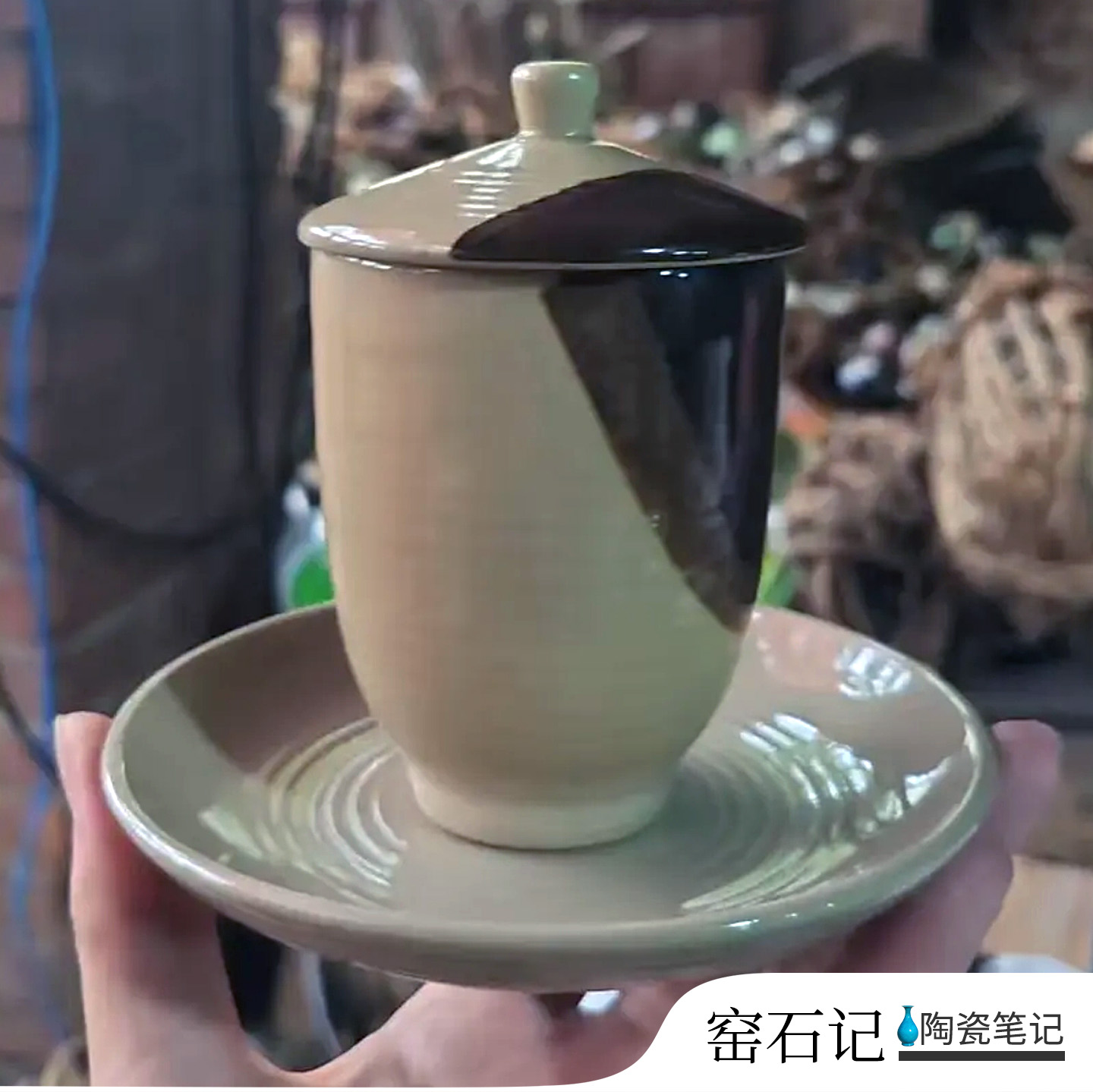 磁州窑粗瓷|奶绿釉杯碟
