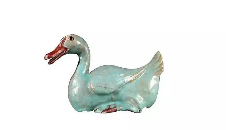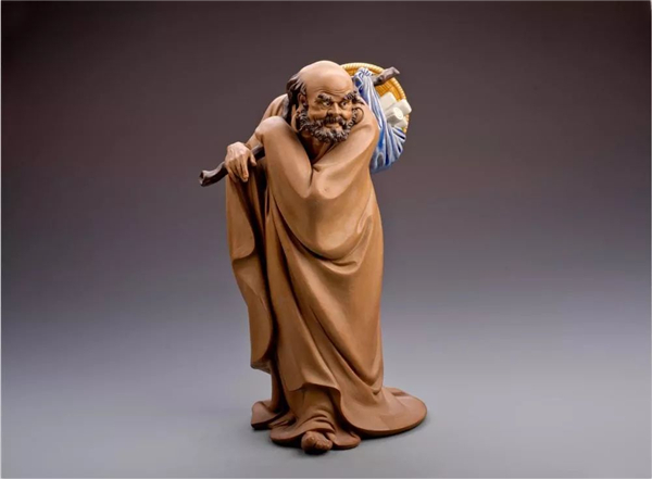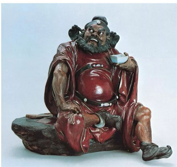 第二是在釉料的使用上,其它陶瓷工艺品多采用釉上彩和釉下彩,而“石湾公仔”则把色料与釉料勾兑在一起,使产品在烧成时直接着色,这种色釉在陶瓷工艺上称为“颜色釉”,同时不在人物的脸、手部位上釉,以泥胎的颜色使肌理表现更加真实,其它产区的陶瓷工艺品则多为全身上釉,而且由于所使用的泥料较粗且含砂,就需要上一层较厚的釉来掩盖,从而使产品的艺术风格显得特别古朴厚重。