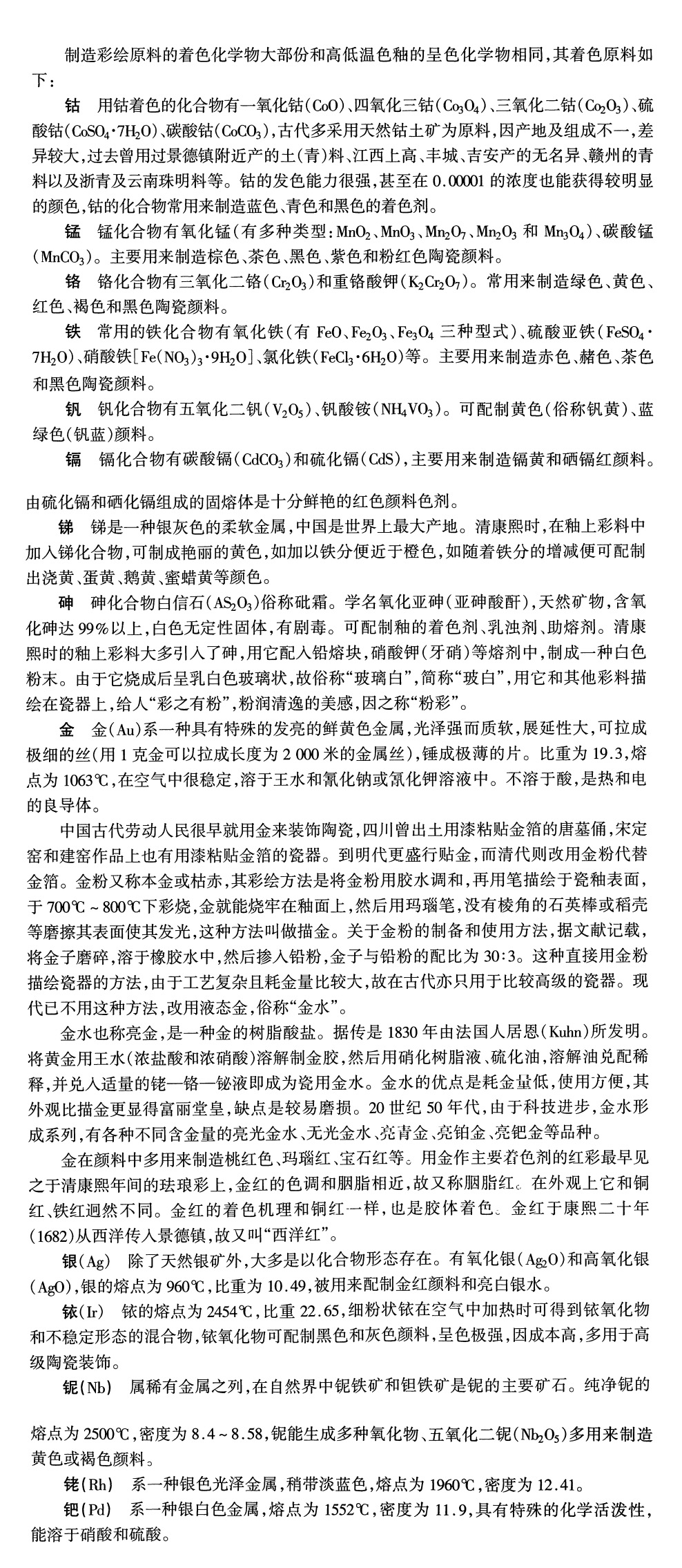 色剂包括着色金属氧化物(由单一或两个以上氧化物组成)、着色硅酸盐、硅铝酸盐、铝酸盐、铬酸盐、铁酸盐等,它们在颜料中形成固溶体或混悬体。熔剂为低熔融温度的玻璃体,为碱金属硅酸盐玻璃、硼酸盐、硅酸铝玻璃或硅酸铅玻璃。